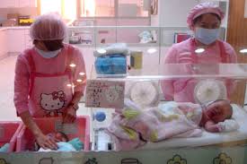 rom blankets and birth certificates to cots and uniforms worn by staff, every aspect of the hello kitty hospital is emblazoned with the little cat.